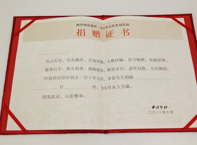 到年底了很多公司要制作很多榮譽(yù)證書或者獎(jiǎng)狀發(fā)給員工,既然是關(guān)于榮譽(yù)的東東那制作的標(biāo)準(zhǔn)就只有一個(gè):高、大、上。這就對一般的印刷廠家在設(shè)計(jì)、制作上有很大的挑戰(zhàn)。但是對于一個(gè)團(tuán)隊(duì)非常成熟的印刷廠來說就是非常簡單的事情了。下面就給大家介紹一本西泠印社剛在我們公司做的一款證書