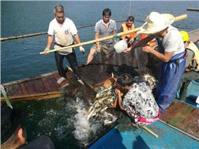 下午二點(diǎn),采風(fēng)團(tuán)來到金竹牌起魚碼頭,深入了解了淳牌有機(jī)魚起魚作業(yè)的全過程。接著,大家一起來到千島湖魚博物館,該館負(fù)責(zé)人親自擔(dān)任解說員,帶領(lǐng)我們參觀學(xué)習(xí)了豐富的魚文化。